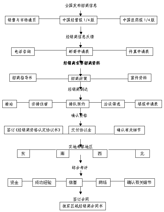 企業(yè)招商是一個(gè)系統(tǒng)工程,任何一個(gè)環(huán)節(jié)的疏落都會(huì)造成企業(yè)資源的浪費(fèi),導(dǎo)致招商效果不理想。有好的企業(yè)背景,沒(méi)有好的產(chǎn)品不行;企劃做的再漂亮,缺乏到位的執(zhí)行也不行;有好的方案,沒(méi)有好的解讀和培訓(xùn)也不行;廣告氣勢(shì)再大,因?yàn)殡娫挏贤记刹粔蛞矔?huì)大打折扣。筆者10年醫(yī)藥企業(yè)高層管理經(jīng)驗(yàn)中也有過(guò)成功的招商歷程,總結(jié)為成功招商九步A、組建強(qiáng)有力的招商隊(duì)伍;B、確定獨(dú)到招商模式和策略;C、如何擬定招商方案、合同、舉辦招商會(huì)?D、包裝、策劃獨(dú)特產(chǎn)品賣(mài)點(diǎn);E、談判技巧與細(xì)節(jié);F、如何培訓(xùn)經(jīng)銷(xiāo)商;G、如何拜訪經(jīng)銷(xiāo)商?H、如何量化考核經(jīng)銷(xiāo)商;I、如何層級(jí)管理經(jīng)銷(xiāo)商渠道。愿與大家分享……